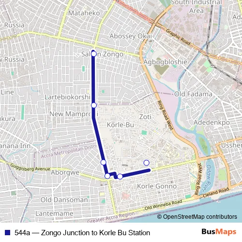 Bus 544a - Zongo Junction to Korle Bu Station: Full Schedule in Accra