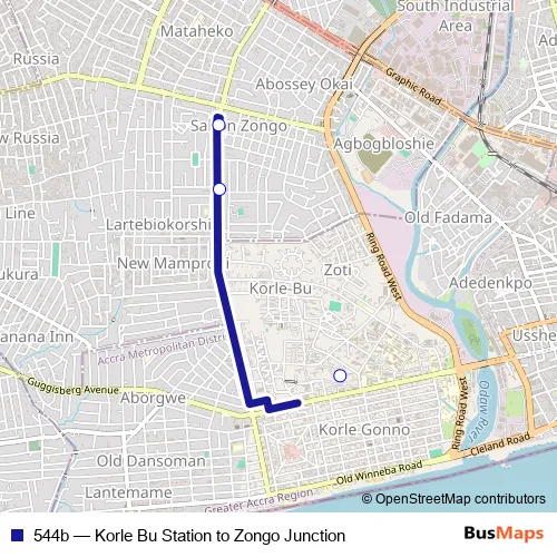 Click here to view the nearest 544b - Korle Bu Station to Zongo Junction bus stop.