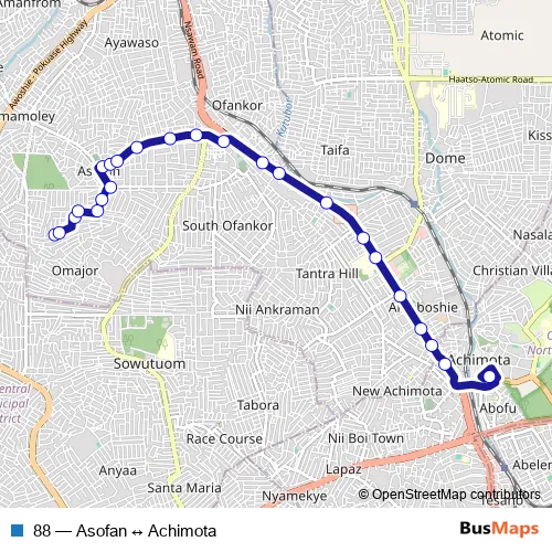 Click here to view the nearest 88 - Asofan ↔ Achimota bus stop.