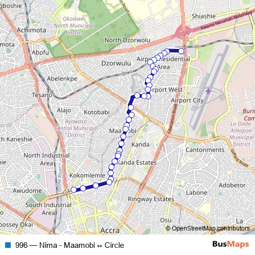 Bus 996 - Nima - Maamobi ↔ Circle in Accra: Stops & Timetable