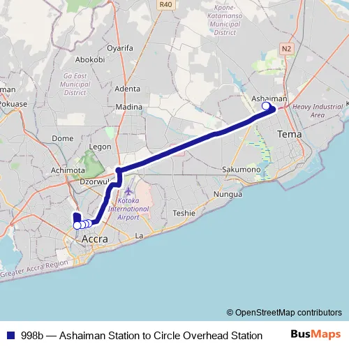 Click here to view the nearest 998b - Ashaiman Station to Circle Overhead Station bus stop.