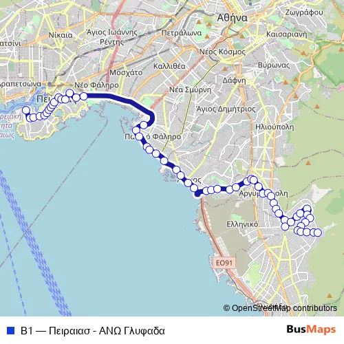 Bus Β1 - Πειραιασ - ΑΝΩ Γλυφαδα: Full Schedule in Argyroupoli
