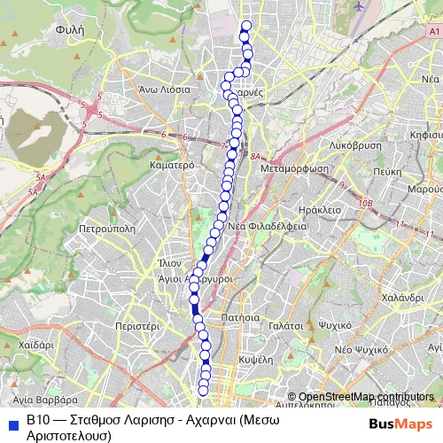 Bus Β10 - Σταθμοσ Λαρισησ - Αχαρναι (Μεσω Αριστοτελουσ) in Acharnes: Stops & Timetable