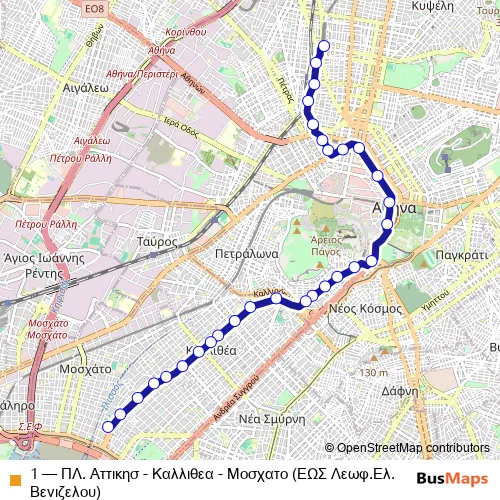 The first stop of the 1 trolleybus route is ΠΛ. Αττικησ and the last stop is ΕΛ. Βενιζελου. 1 (ΠΛ. Αττικησ - Καλλιθεα - Μοσχατο (ΕΩΣ Λεωφ.Ελ.Βενιζελου)) is operational during on weekends.