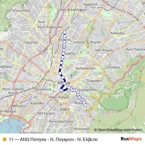 The first stop of the 11 trolleybus route is Ν. Ελβετια and the last stop is ΑΝΩ Πατησια. 11 (ΑΝΩ Πατησια - Ν. Παγκρατι - Ν. Ελβετια) is operational during on weekends.