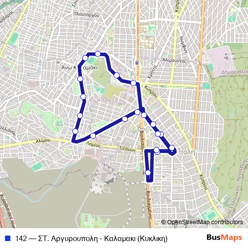 Bus 142 - ΣΤ. Αργυρουπολη - Καλαμακι (Κυκλικη): Full Schedule in Argyroupoli