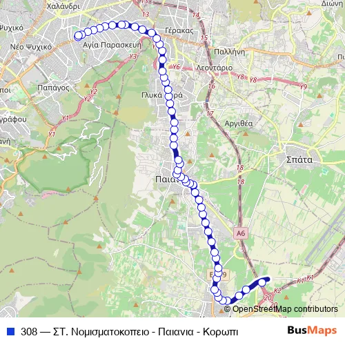 Click here to view the nearest 308 - ΣΤ. Νομισματοκοπειο - Παιανια - Κορωπι bus stop.