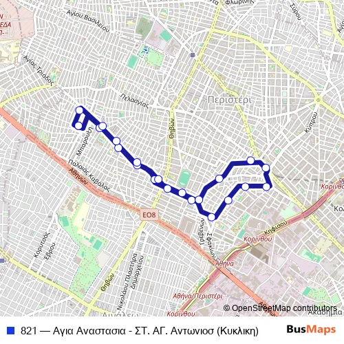 Click here to view the nearest 821 - Αγια Αναστασια - ΣΤ. ΑΓ. Αντωνιοσ (Κυκλικη) bus stop.