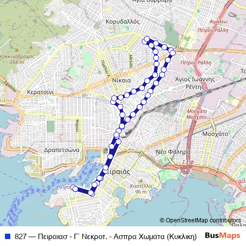 Bus 827 - Πειραιασ - Γ΄ Νεκροτ. - Ασπρα Χωματα (Κυκλικη) in Nikaia: Stops & Timetable
