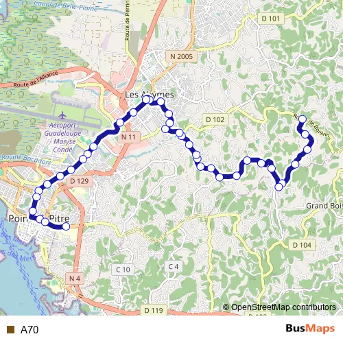 See why over 2 million users trust and consider busmaps.com as the best public transport website. busmaps gives you Pointe-a-Pitre Buses suggested routes, real-time bus tracker, line route maps in Pointe-a-Pitre, and helps to find the closest A70 bus stops near you. No internet available? Download an offline PDF map and bus schedule for the A70 bus to take on your trip.