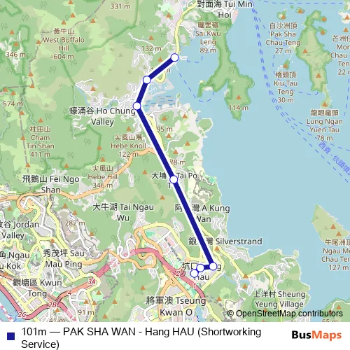 Click here to view the nearest 101m - PAK SHA WAN - Hang HAU (Shortworking Service) bus stop.