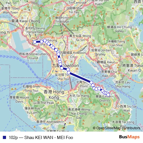 Click here to view the nearest 102p - Shau KEI WAN - MEI Foo bus stop.
