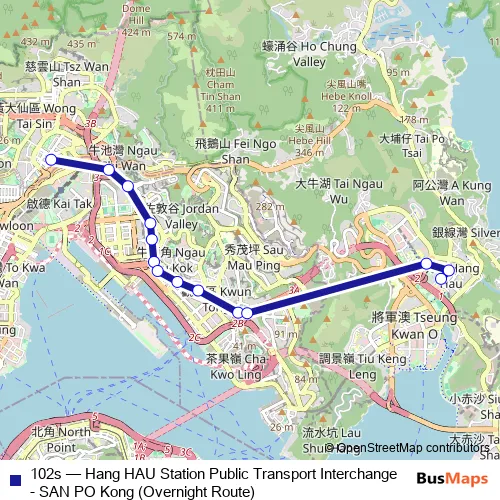Click here to view the nearest 102s - Hang HAU Station Public Transport Interchange - SAN PO Kong (Overnight Route) bus stop.