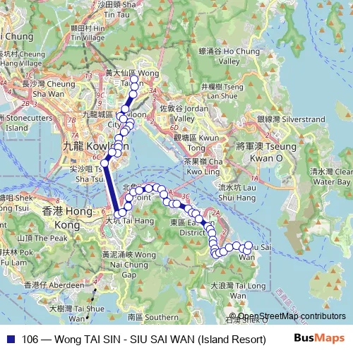 Siu SAI WAN (Island Resort). 106 (Wong TAI SIN - SIU SAI WAN (Island Resort)) is operational during everyday.