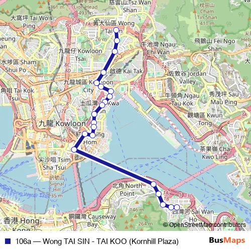 See why over 2 million users trust and consider busmaps.com as the best public transport website. busmaps gives you Mong Kok Buses suggested routes, real-time bus tracker, line route maps in Mong Kok, and helps to find the closest 106a bus stops near you. No internet available? Download an offline PDF map and bus schedule for the 106a bus to take on your trip.