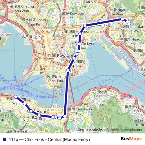 Bus 111p - Choi Fook - Central (Macao Ferry) in Mong Kok: Stops & Timetable