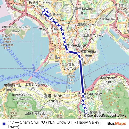 Click here to view the nearest 117 - Sham Shui PO (YEN Chow ST) - Happy Valley (Lower) bus stop.
