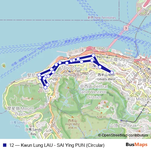 12 (Kwun Lung LAU - SAI Ying PUN (Circular)) Bus in Central
