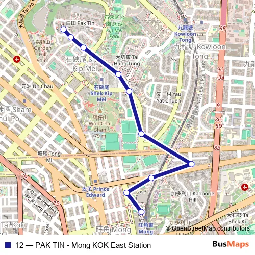 The first stop of the 12 bus route is PAK TIN (PAK WAN Street) Public Transport Interchange and the last stop is Mongkok East Station|Mongkok East Station. 12 (PAK TIN - Mong KOK East Station) is operational during everyday.