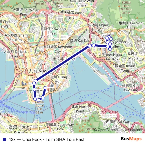 Bus 13x - Choi Fook - Tsim SHA Tsui East Schedule in Kwun Tong