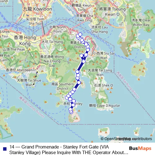 See why over 2 million users trust and consider busmaps.com as the best public transport website. busmaps gives you Hong Kong Buses suggested routes, real-time bus tracker, line route maps in Hong Kong, and helps to find the closest 14 bus stops near you. No internet available? Download an offline PDF map and bus schedule for the 14 bus to take on your trip.
