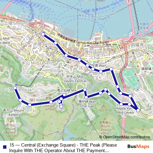 Bus 15 - Central (Exchange Square) - THE Peak (Please Inquire With THE Operator About THE Payment Arrangement OF THE TWO-WAY Fare ON This Route.) Schedule in Hong Kong