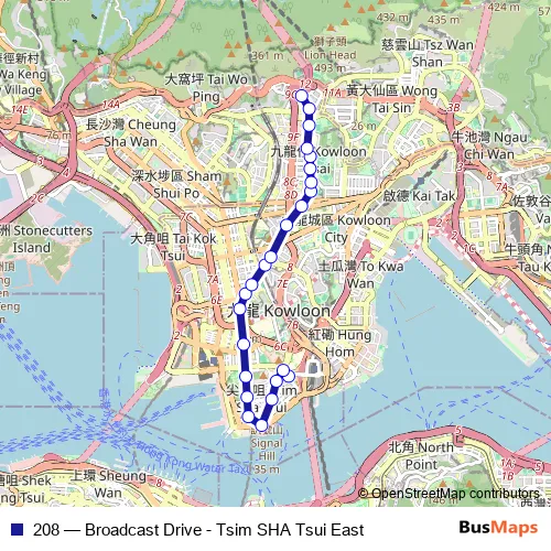 Click here to view the nearest 208 - Broadcast Drive - Tsim SHA Tsui East bus stop.