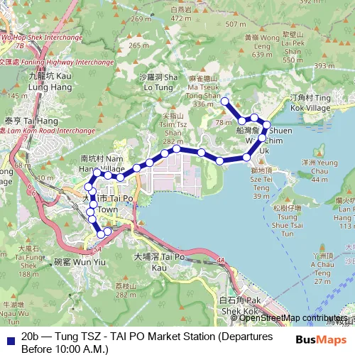 Bus 20b - Tung TSZ - TAI PO Market Station (Departures Before 10:00 A.M.) in Tai Po: Stops & Timetable