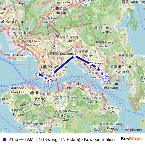 See why over 2 million users trust and consider busmaps.com as the best public transport website. busmaps gives you Kwun Tong Buses suggested routes, real-time bus tracker, line route maps in Kwun Tong, and helps to find the closest 215p bus stops near you. No internet available? Download an offline PDF map and bus schedule for the 215p bus to take on your trip.