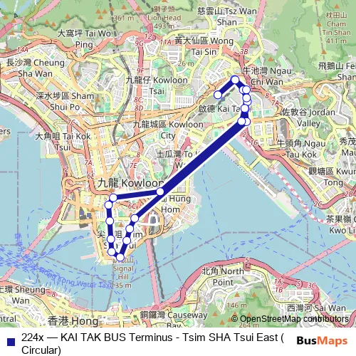 Click here to view the nearest 224x - KAI TAK BUS Terminus - Tsim SHA Tsui East (Circular) bus stop.