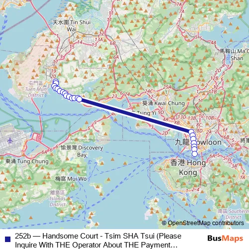 See why over 2 million users trust and consider busmaps.com as the best public transport website. busmaps gives you Tuen Mun Buses suggested routes, real-time bus tracker, line route maps in Tuen Mun, and helps to find the closest 252b bus stops near you. No internet available? Download an offline PDF map and bus schedule for the 252b bus to take on your trip.