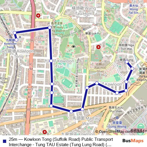 Click here to view the nearest 25m - Kowloon Tong (Suffolk Road) Public Transport Interchange - Tung TAU Estate (Tung Lung Road) (Please Inquire With THE Operator About THE Payment Arrangement OF THE TWO-WAY Fare ON This Route.) bus stop.