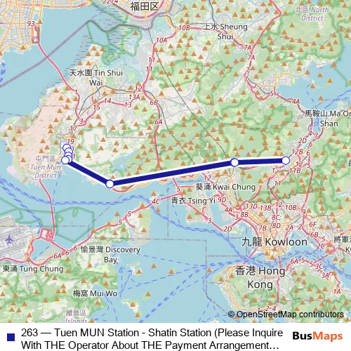 Bus 263 - Tuen MUN Station - Shatin Station (Please Inquire With THE Operator About THE Payment Arrangement OF THE TWO-WAY Fare ON This Route.) in Tuen Mun: Stops & Timetable