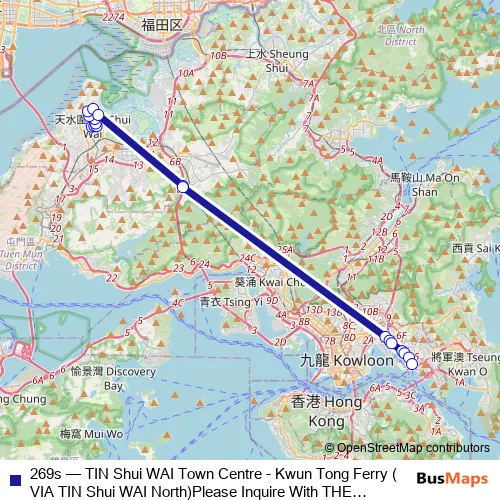 Services on the 269s - TIN Shui WAI Town Centre - Kwun Tong Ferry (VIA TIN Shui WAI North)Please Inquire With THE Operator About THE Payment Arrangement OF THE TWO-WAY Fare ON This Route.) bus start at 07:10 on Monday, Tuesday, Wednesday, Thursday, Friday.
