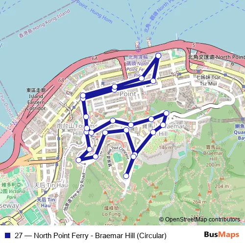 Bus 27 - North Point Ferry - Braemar Hill (Circular): Full Schedule in Hong Kong
