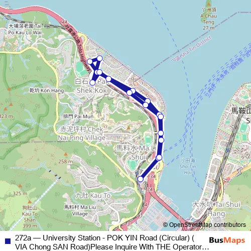 Bus 272a - University Station - POK YIN Road (Circular) (VIA Chong SAN Road)Please Inquire With THE Operator About THE Payment Arrangement OF THE TWO-WAY Fare ON This Route.) in Tai Po: Stops & Timetable