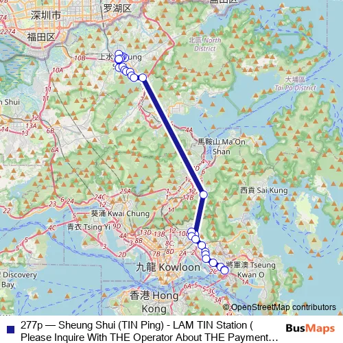 See why over 2 million users trust and consider busmaps.com as the best public transport website. busmaps gives you Tai Po Buses suggested routes, real-time bus tracker, line route maps in Tai Po, and helps to find the closest 277p bus stops near you. No internet available? Download an offline PDF map and bus schedule for the 277p bus to take on your trip.