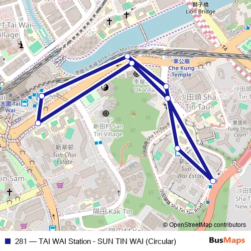 Bus 281 - TAI WAI Station - SUN TIN WAI (Circular): Full Schedule in Sha Tin