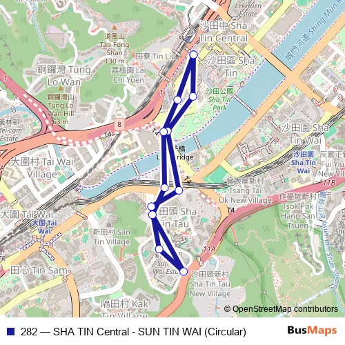 Click here to view the nearest 282 - SHA TIN Central - SUN TIN WAI (Circular) bus stop.