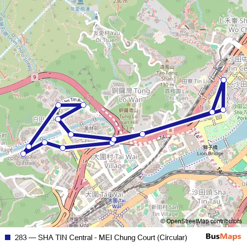 Bus 283 - SHA TIN Central - MEI Chung Court (Circular): Full Schedule in Sha Tin