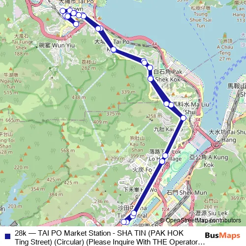 28k Bus - TAI PO Market Station - SHA TIN (PAK HOK Ting Street) (Circular) (Please Inquire With THE Operator About THE Payment Arrangement OF THE TWO-WAY Fare ON This Route.)