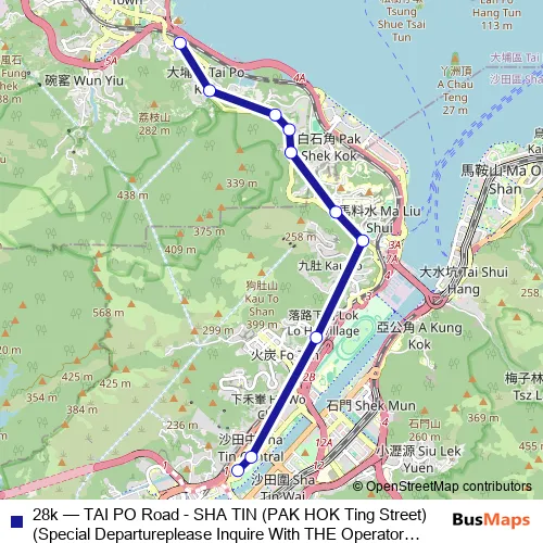 Bus 28k - TAI PO Road - SHA TIN (PAK HOK Ting Street) (Special Departureplease Inquire With THE Operator About THE Payment Arrangement OF THE TWO-WAY Fare ON This Route.) in Sha Tin: Stops & Timetable