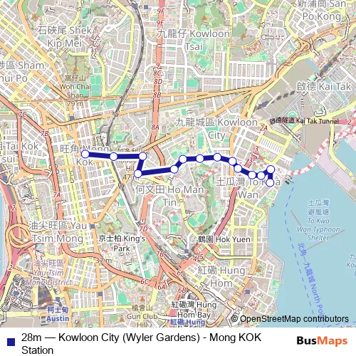 Click here to view the nearest 28m - Kowloon City (Wyler Gardens) - Mong KOK Station bus stop.