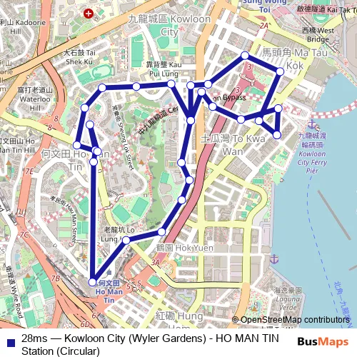 Bus 28ms - Kowloon City (Wyler Gardens) - HO MAN TIN Station (Circular) in Mong Kok: Stops & Timetable