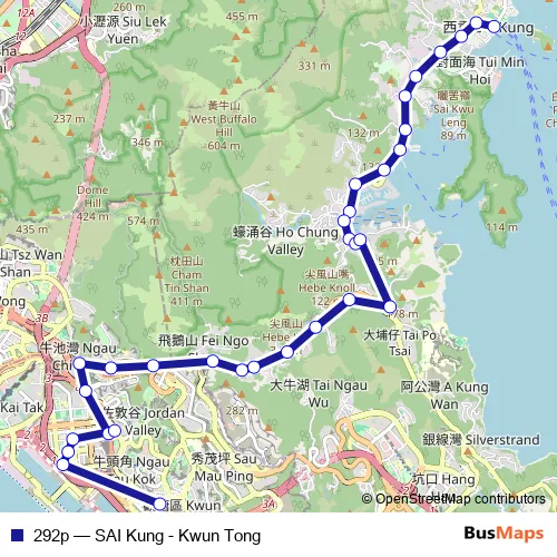 Bus 292p - SAI Kung - Kwun Tong: Full Schedule in Sai Kung