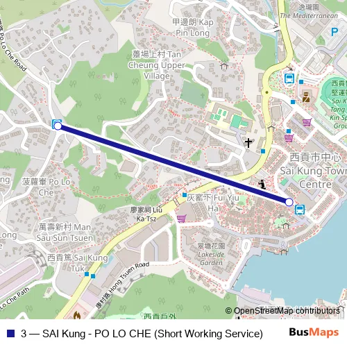 Click here to view the nearest 3 - SAI Kung - PO LO CHE (Short Working Service) bus stop.