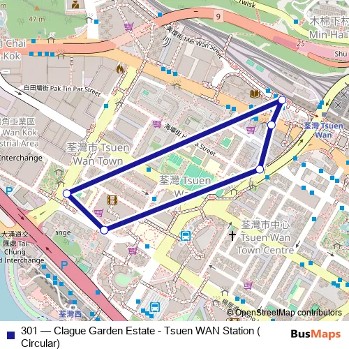 Bus 301 - Clague Garden Estate - Tsuen WAN Station (Circular) in Tsuen Wan: Stops & Timetable