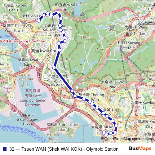 Bus 32 - Tsuen WAN (Shek WAI KOK) - Olympic Station Schedule in Tsuen Wan