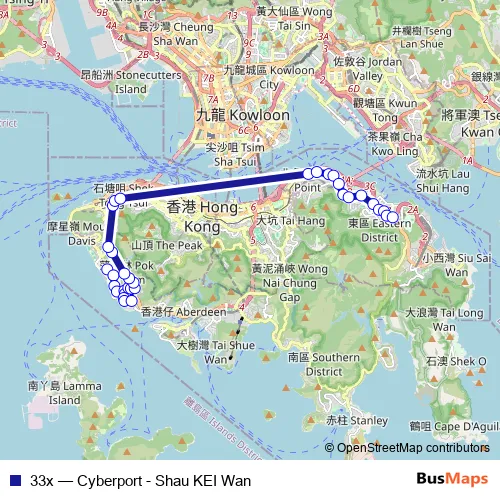 Bus 33x - Cyberport - Shau KEI Wan in Hong Kong: Stops & Timetable