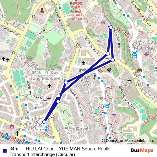 The first stop of the 34m bus route is SAU LAI Street, Outside HIU LAI Shopping Centre and the last stop is SAU LAI Street, Outside HIU LAI Shopping Centre. 34m (HIU LAI Court - YUE MAN Square Public Transport Interchange (Circular)) is operational during everyday.